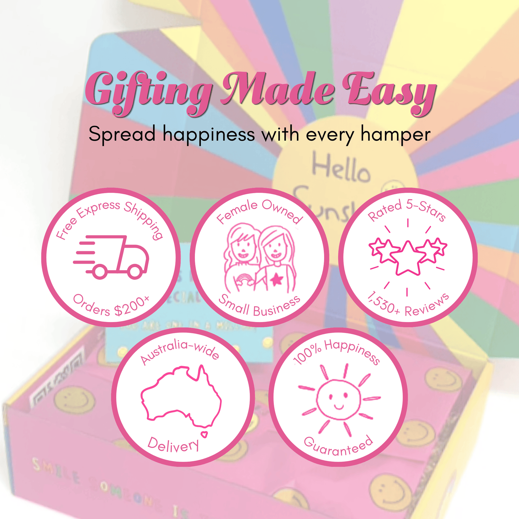 At Little Shop of Happiness, we lovingly pack and dispatch your hampers with great care and positive vibes! Once your order leaves our hands and is on its way via StarTrack, it’s officially out of our control and in the capable (and speedy!) hands of the courier team.